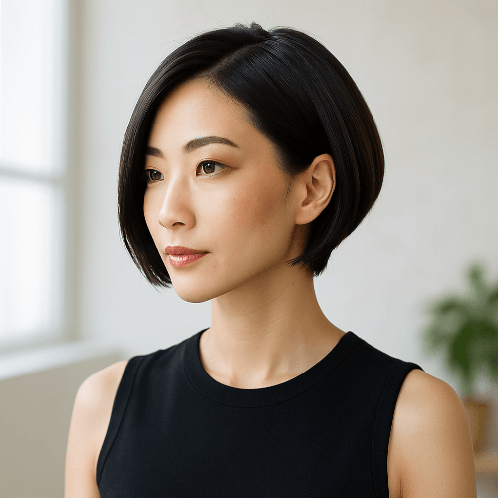 「年齢とともに輪郭やボリュームの変化が気になる」「朝のスタイリング時間を短縮したい」と感じている方にもおすすめです。シルエットの魔法で、たった1カットで印象がガラリと変わる――前髪なしの前下りショートボブの最大の魅力は、骨格の悩みや髪質の変化にも柔軟に対応できること。